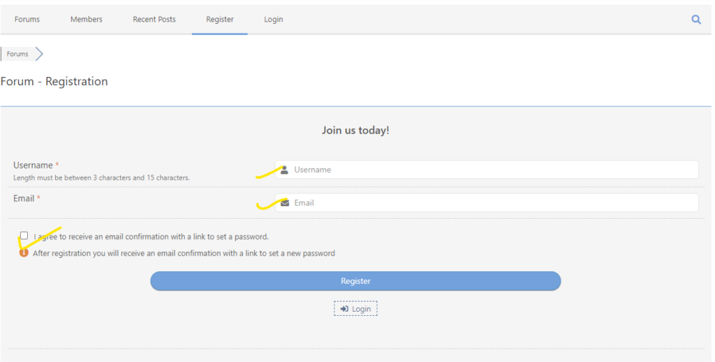 1. Register here. Insert username and Email. Don’t forget to checkmark the “I agree to receive an email confirmation with a link to set a password.”